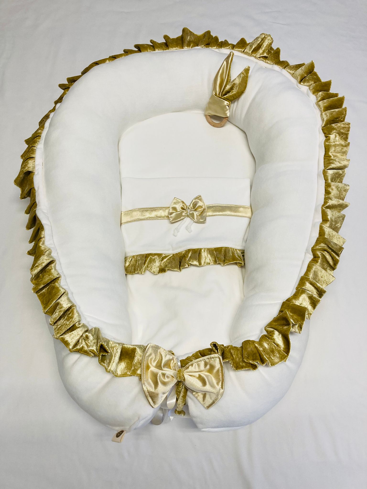 Babynestjes geven je baby een geborgen en knus gevoel tijdens het slapen. Onze babynestjes zijn heerlijk zacht en hebben een uitneembaar matrasje. Ze zijn eventueel iets kleiner (en knusser) te maken, door het lint aan te trekken.