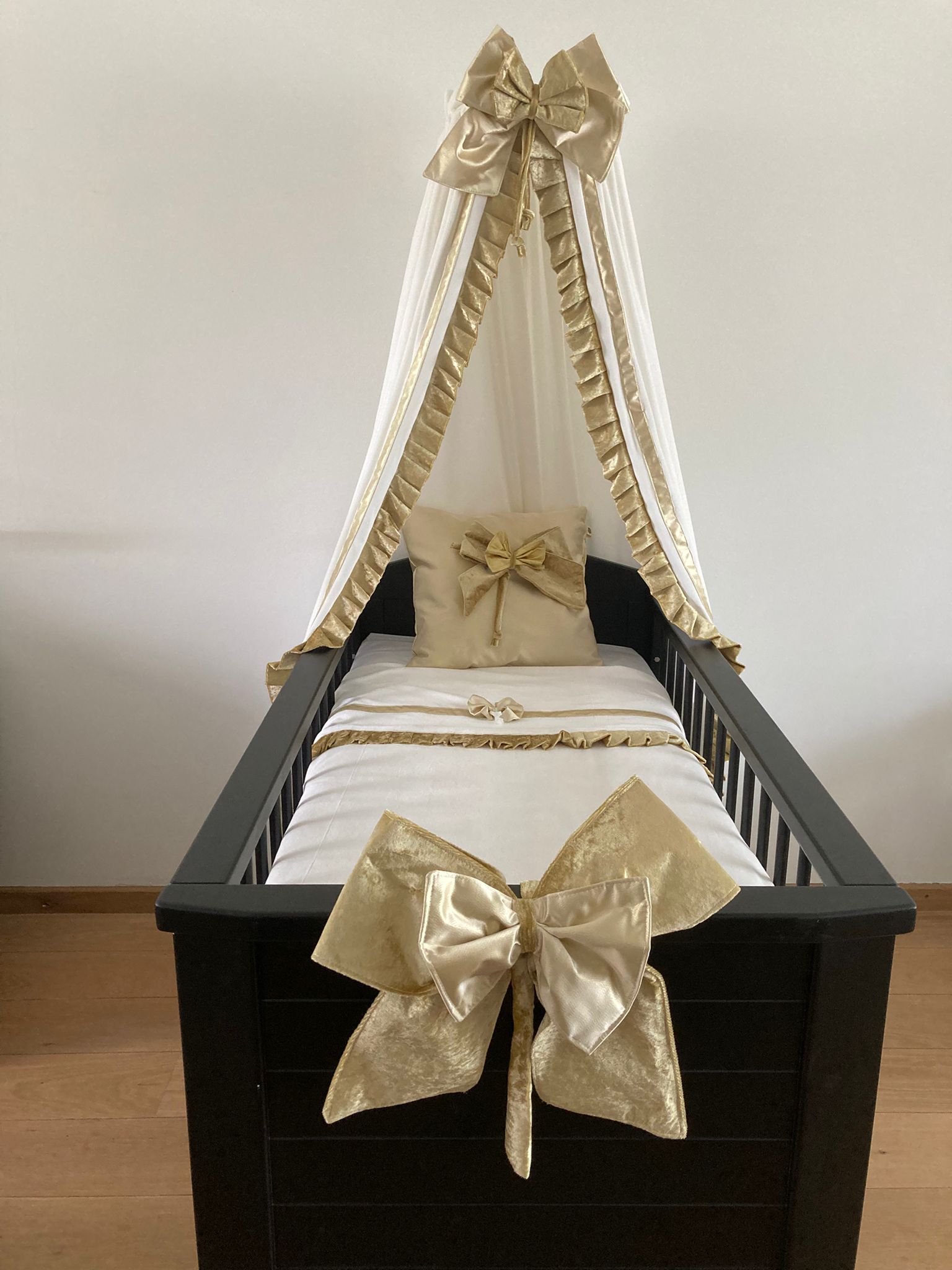 Mooie decoratiestrik, bijvoorbeeld voor aan de kopse kant van het ledikantje.